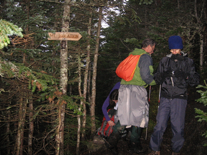 Windy, Mad River, and Thinfea about to follow new sign up spur trail to Isolation summit