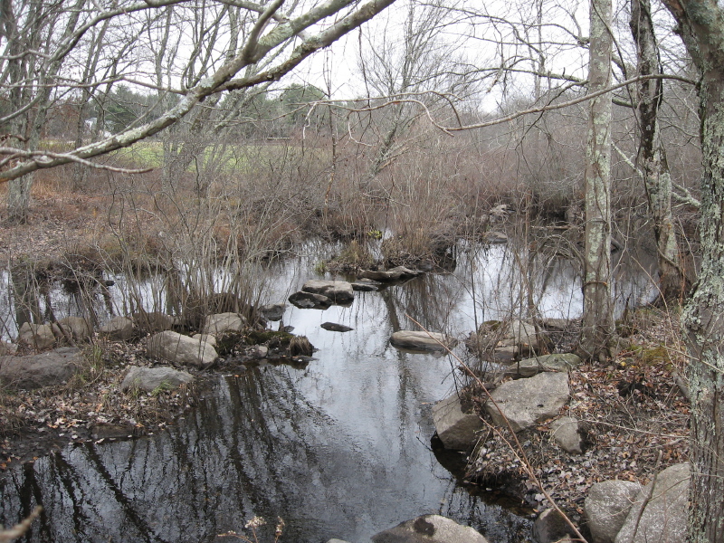 line of stones down the middle of West Meadow Brook