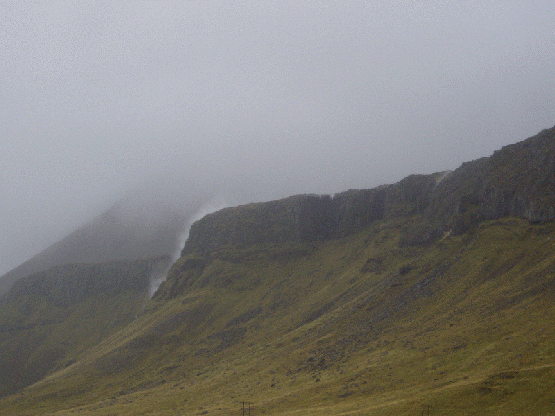 It was so windy the water didn't reach the bottom of the falls.