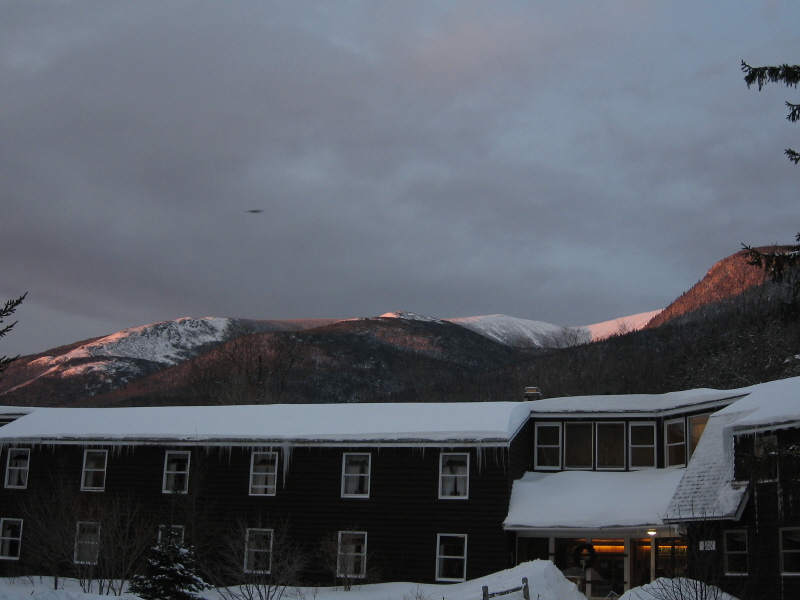 Joe Dodge Lodge with Tuckerman Ravine in the background