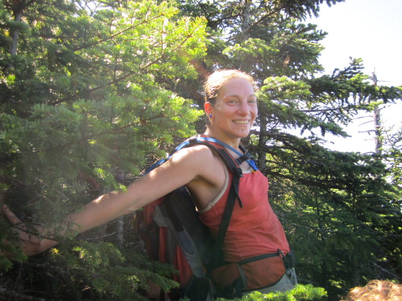 balancing on a blowdown so she can take a picture